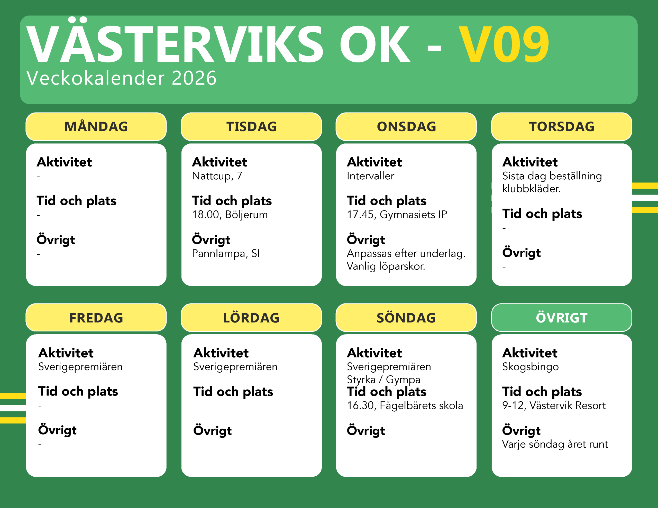 - Deltävling 7 NATTCUPEN! Samling 18.15, start 18.30. Böljerum.